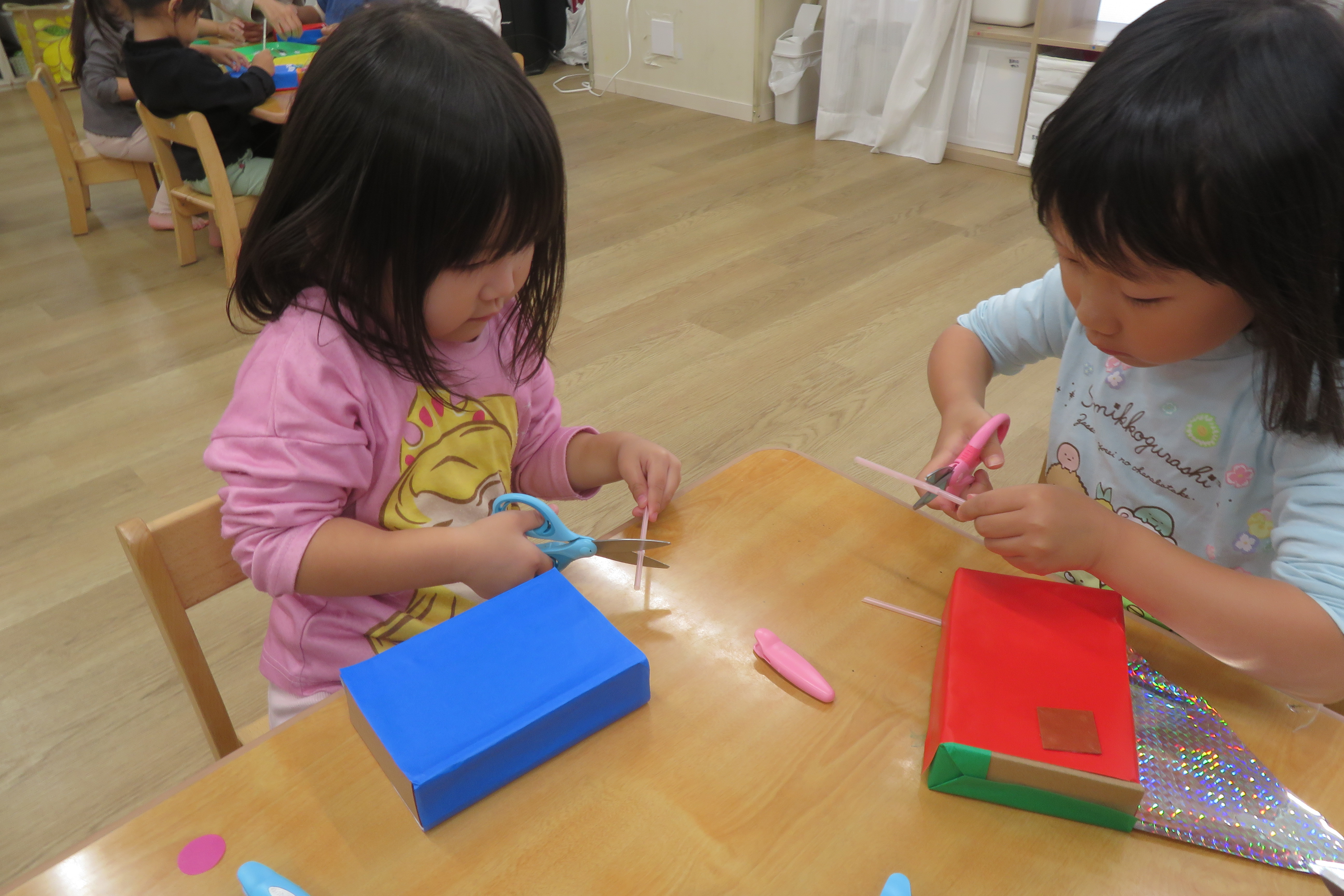 ハサミやのりを上手に使ってペタペタ。