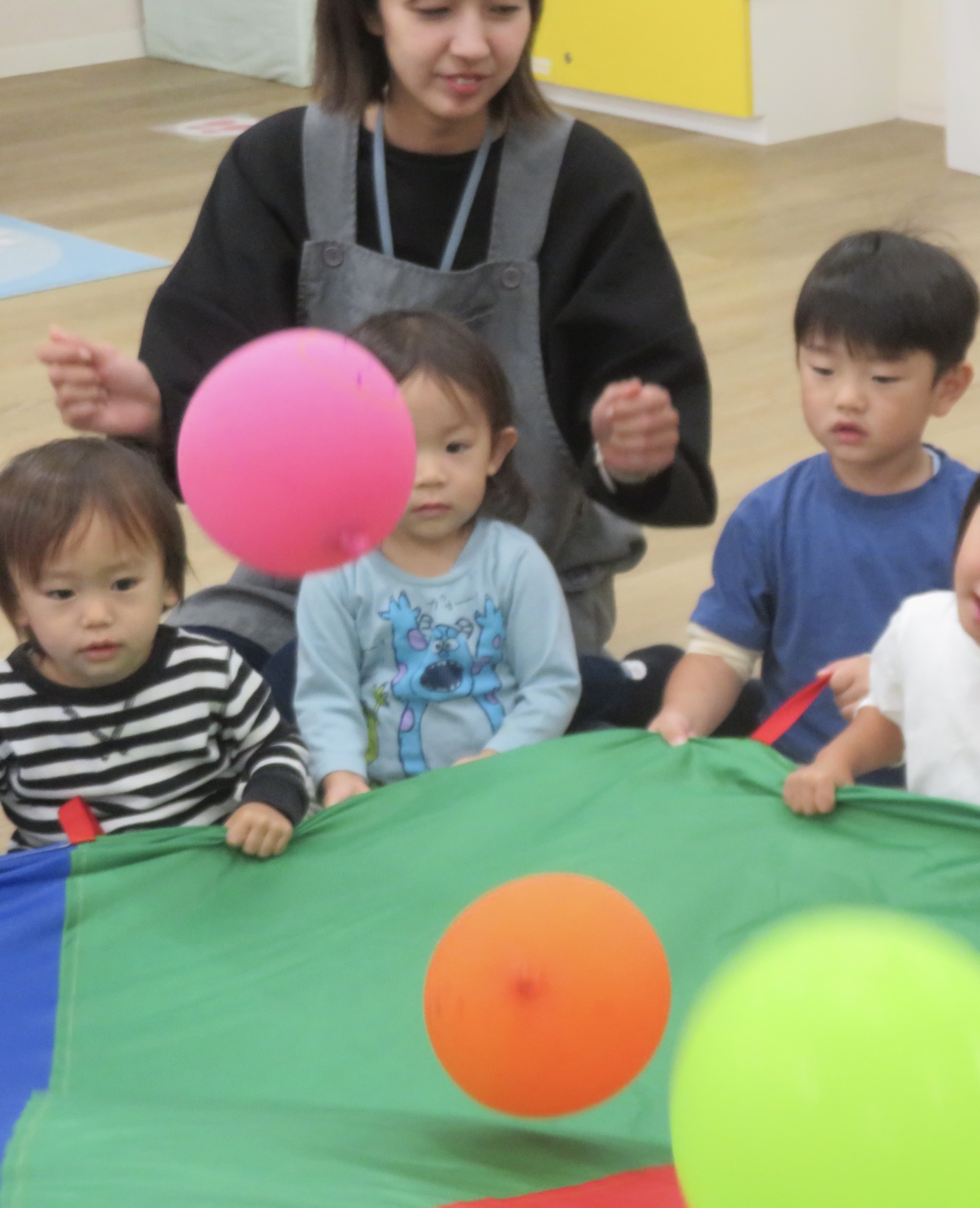 大きなパラバルーンに風船を乗せてゆらゆらさせながら歌いました。