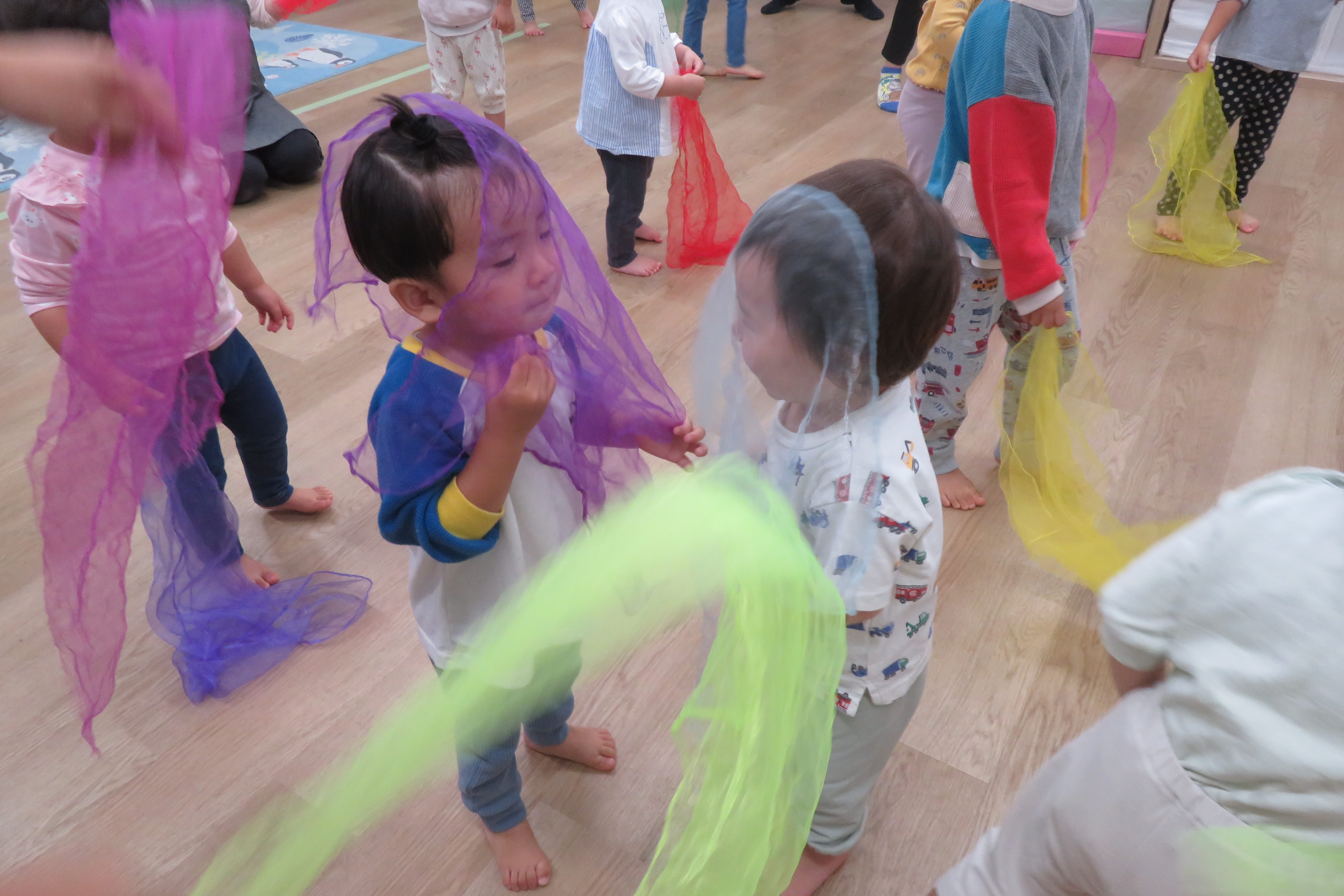 おとなりのおともだちと、リズムに乗って手をたたきながら楽しみました♡